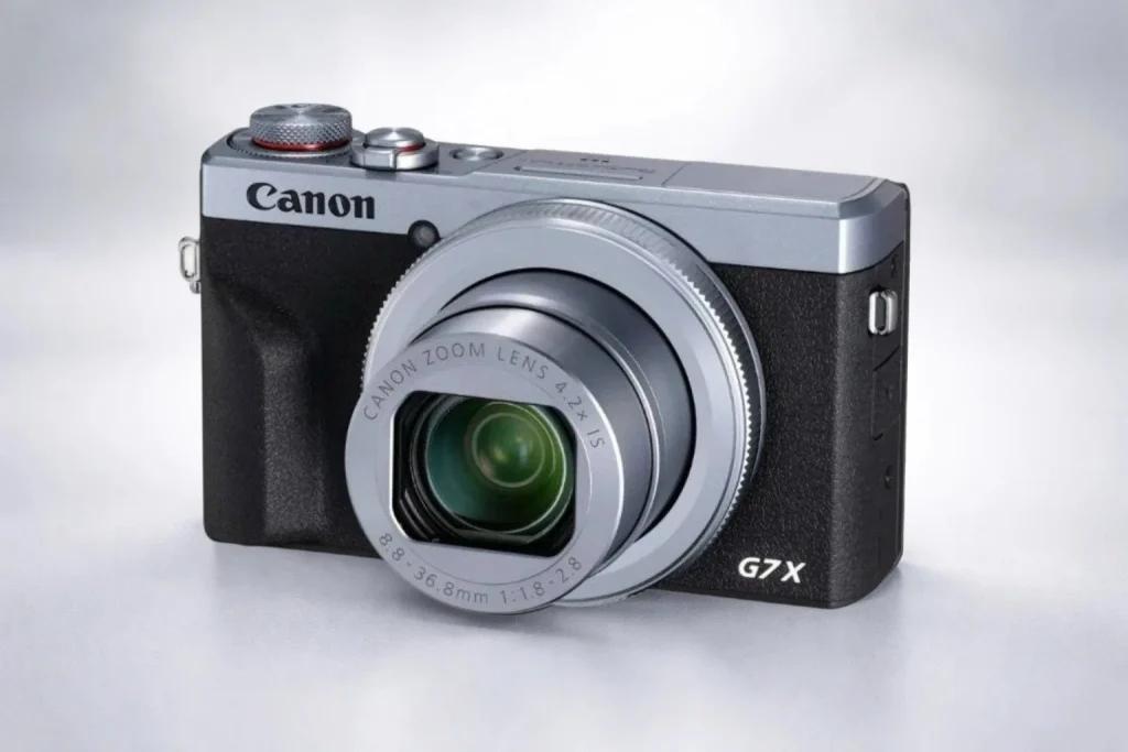 Canon PowerShot G7 X Mark III — это компактный цифровой фотоаппарат Canon с 1-дюймовой матрицей, светосильным зум-объективом и поддержкой видеозаписи в формате 4K. Модель относится к линейке PowerShot и ориентирована на повседневную съёмку, путешествия, видеоблогинг и создание контента без использования крупной зеркальной или беззеркальной камеры.