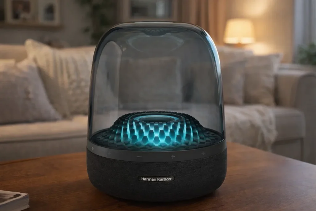 Производитель позиционирует Aura Studio 4 как домашнюю Bluetooth-колонку для прослушивания музыки и аудиоконтента в помещении. Устройство рассчитано на стационарное размещение и не предназначено для портативного использования вне дома.