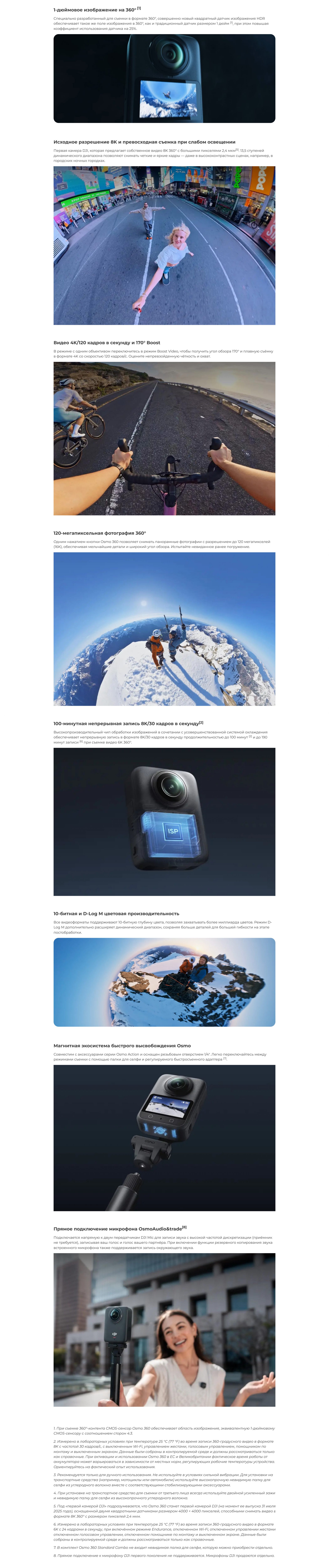 360° видео, SuperNight (ночной режим), Boost Video (широкоугольный режим 170°), замедленная съемка 4K/120fps, D-Log M для работы с цветом