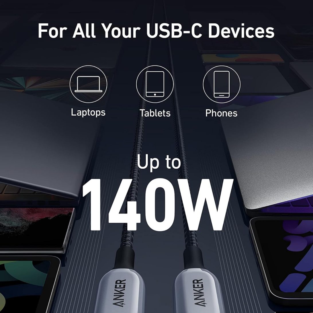 Anker 765 USB-C to USB-C Nylon Cable 140W 1.8m – это высокоскоростной кабель для зарядки и передачи данных, разработанный для самых требовательных пользователей. Этот надежный и долговечный кабель обеспечит быструю зарядку ваших устройств, будь то смартфон, планшет или ноутбук.