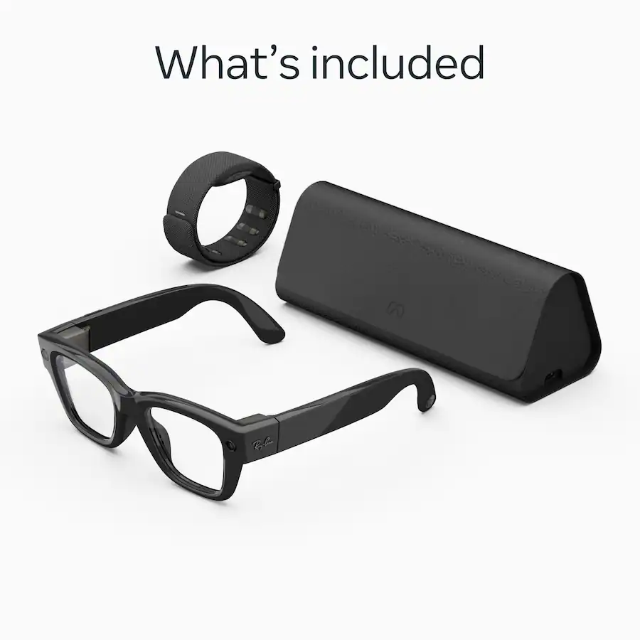 Ray-Ban Meta Display выглядят как классические очки Ray-Ban в глянцевом черном цвете Shiny Black, но внутри скрыт полноцветный дисплей в линзе и умная начинка для работы с уведомлениями, камерой и голосовым ассистентом. Нейро-браслет Meta Neural Band в цвете Charcoal Black считывает движения мышц руки (EMG), позволяя пролистывать, выбирать и управлять интерфейсом почти незаметными жестами, без телефона в руках. Такой набор подходит для работы, города и путешествий: вы видите подсказки и ответы Meta AI, снимаете фото и видео, принимаете звонки и остаетесь на связи, при этом очки выглядят как обычные солнцезащитные Ray-Ban.