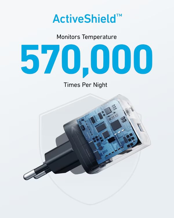 - Компактный дизайн: Зарядное устройство Anker 323 на 45% меньше, чем оригинальное зарядное устройство мощностью 30Вт, что делает его идеальным для путешествий.